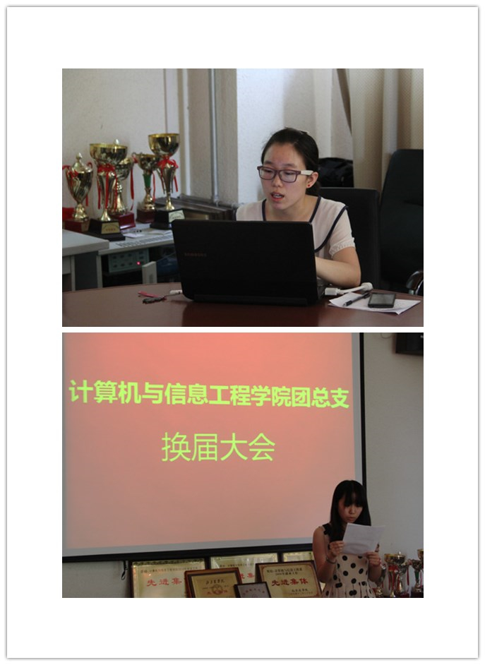 张倩怡同学代表新一届团总支委员发言,对今后工作进行展望,并表示一定会努力工作,将学院的团总支工作带上一个新台阶。会后,上一届团总支委员与新一届团总支委员做工作经验交流,大家分别结合自身工作进行经验分享,并提出宝贵建议。