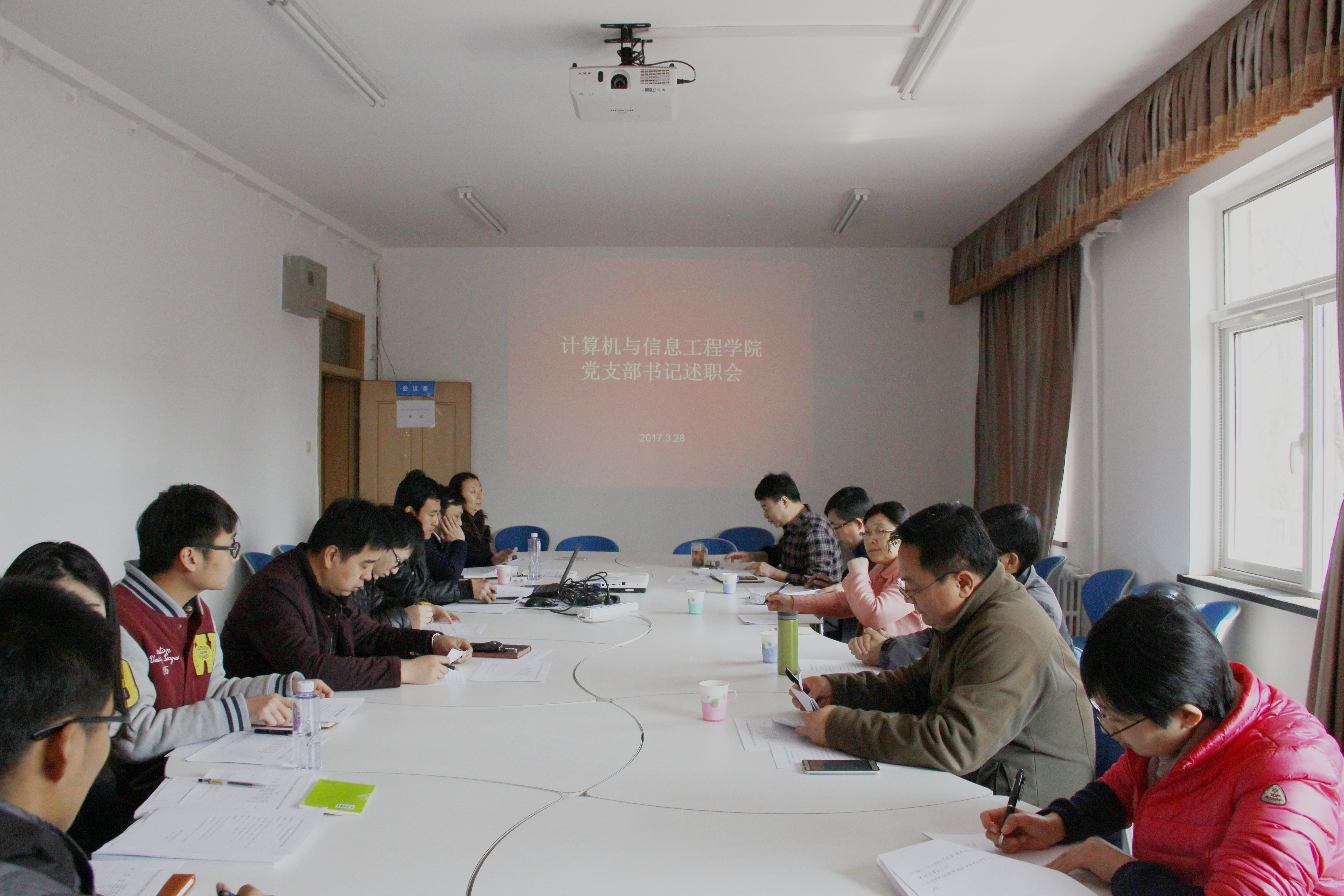 按照学校党委《关于开展2016年度基层党建工作述职评议考核的通知》要求,计算机与信息工程学院党总支于3月28日中午12:30,在2号楼4015召开党支部书记抓基层党建工作述职评议考核会。学校考核工作领导小组张永红、高建伟、党登峰、袁中立等4位领导,2003网站太阳集团党总支委员、基层党支部书记、师生代表参加了会议。会议由学院党总支书记韩宝平主持。